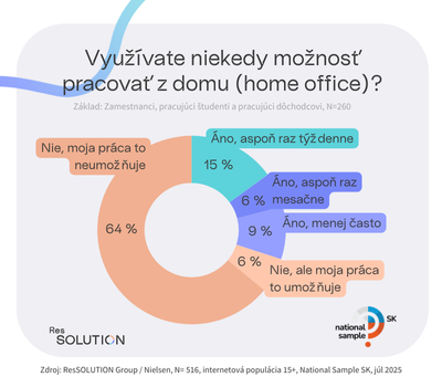Zaujímavé je, že 6 % respondentov home office nevyužíva, napriek tomu, že im to ich práca umožňuje. Najväčšia časť zamestnancov, pracujúcich študentov a dôchodcov (64 %) však uviedla, že home office nemôžu využívať vôbec – ich zamestnanie to skrátka neumožňuje.